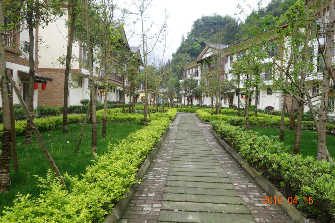 根据政府灾后重建规划,中坝博爱新村选址于中坝村1、2、3、5组组,占地面积近260亩,拟安置重建户255户1023人。民房重建方式为统规统建(183户)和统规自建(72户),户均面积120平方米,政府户均补贴8万元,其余由重建户自筹解决。