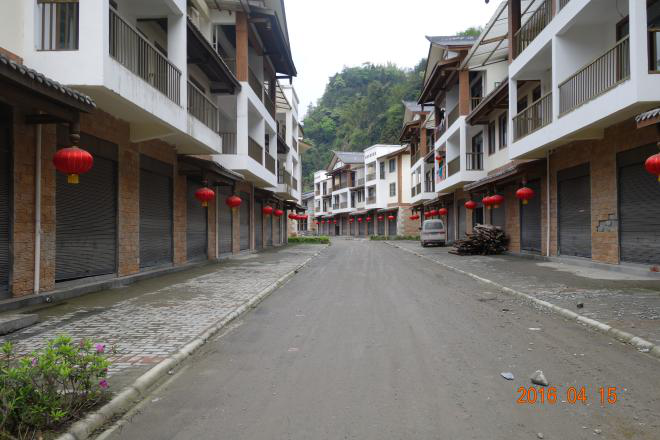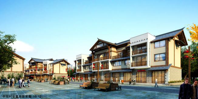 民房部分:中坝新村重建户共255户,重建方式为统规统建和自建。第一期、第二期为统规统建共139户,已交房;第三期,包括统规统建44户和自建房72户,其中统规统建44户已完成主体和风貌,自建房72户主体完工63户。